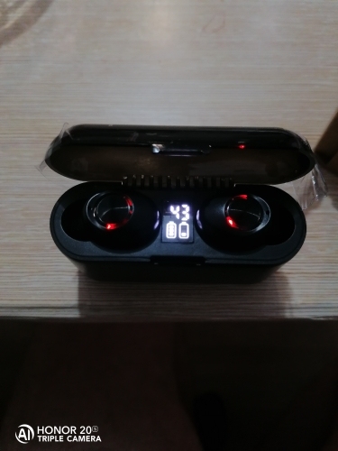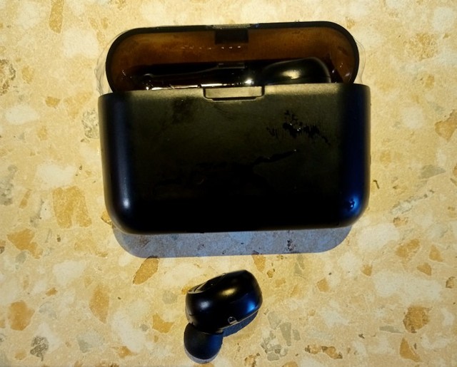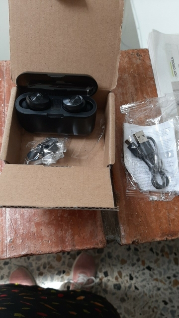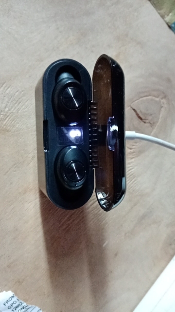Came neatly packed in a box. Compared with other budget Chinese headphones are very even high quality. The case itself is heavy, the plastic is pleasant to the touch. Was charged at 55%, this was enough for a full charge of headphones. The sound is clear.