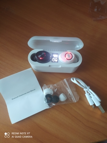 Пришли аккуратно упакованными в коробочке. По сравнению с другими бюджетными китайскими наушниками очень даже качественные. Сам кейс увесистый, пластик приятный на ощупь. Был заряжен на 55%, этого хватило для полного заряда наушников. Звук чистый.