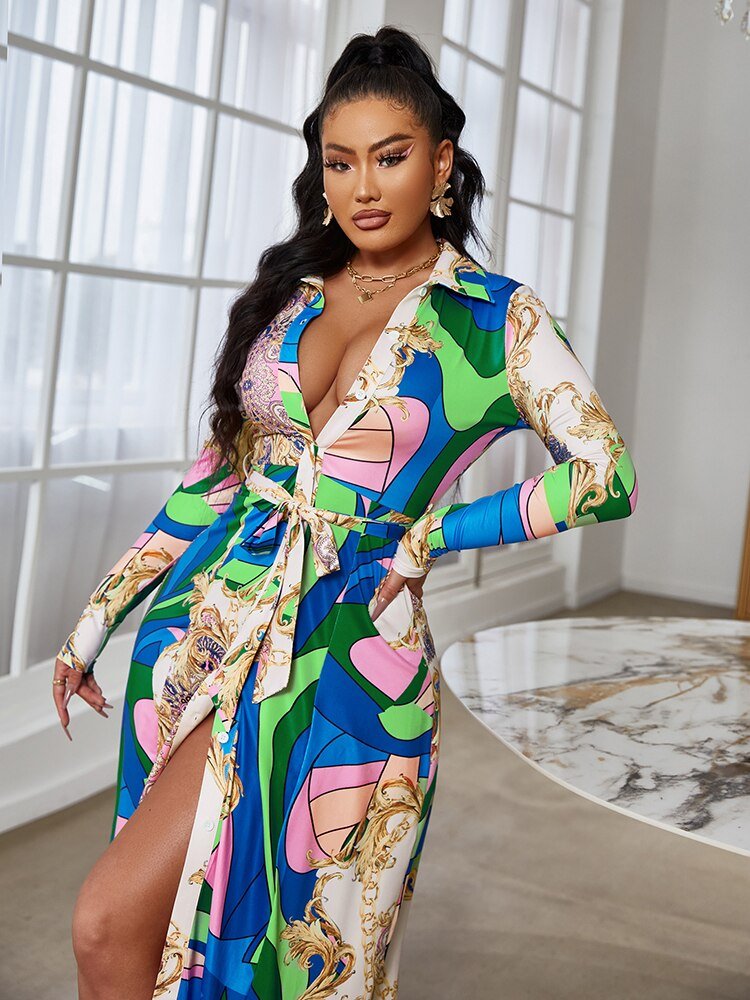 فستان طويل صيفي بألوان وازرار اماميه